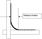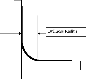 First, determine the radius of your bullnose corner (page 55). Place two straight edges as shown in the illustration to the left. Measure the distance indicated. This is the radius of the bullnose corner.