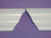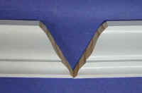 It is very useful to glue/epoxy the small pieces together (use fast setting). Due to the small sizes, you will not be able to use nails. It is recommended that nails in the long sections of the crown not be any closer to the joint than 3" and any nails within 12" of the end should be pre-drilled or you can use a finishing nail gun. Please be careful while cutting the small wedge transition piece. It is safer to cut small pieces of crown laying flat not propped up.