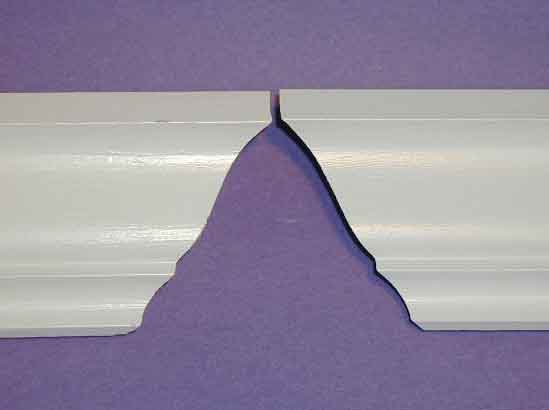 Coping crown is the method used that involves hand cutting and fitting each crown molding joint. Coping crown is very time consuming. It involves running the first piece of crown (cut square and installed) all the way into the inside corner and holding the second piece in place butted up next to the first. Use a pair of dividers (a circle compass will work fine), opened wide enough, and draw a matching contour on the second piece of crown. The compass must be held in a horizontal position with the sharp point up next to the first crown piece and the pencil point resting on the second piece of crown. Then, move the compass up and down while holding it in the horizontal position. This will result in transferring the contour of the first crown surface contour to the second piece. Next, take a coping saw and cut on the line with the saw angles about 5 degrees. Most people will just use a jigsaw and, after the crown is installed, rely on plenty of caulking to make the job look good. Please note that coping will only work for corners that are inside corners (usually 90 +/- 10 degrees). If you have an outside corner (greater than 180 degrees, such as when a hallway makes a turn), you will have to cut a compound miter or either block the corner and butt both pieces of crown into it. Our book will provide you with the information to easily cut and install your crown molding even if you choose to cut your crown using a simple miter box. Stay away from coping. It is just simply too much trouble.
